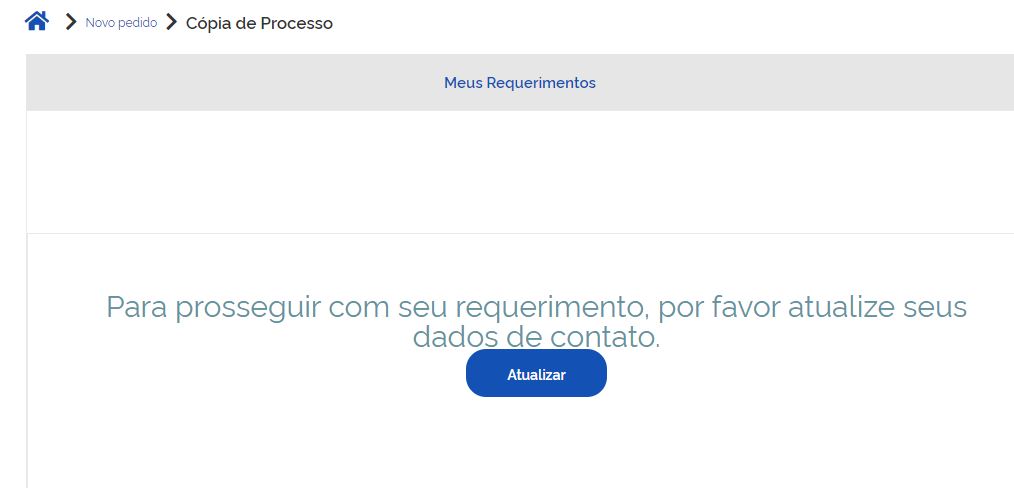 Inicialmente será necessário atualizar os seus dados de contato. Clique em atualizar.